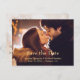 Cette annonce de mariage personnalisable "Save the Date" présente une typographie de script jaune-or qui n'est pas personnalisable. Cependant, le texte ci-dessous contenant les noms, la date et le lieu de la cérémonie le sont. Vous pouvez personnaliser cette carte postale en changeant la photo du couple actuel et en insérant une photo du couple prévu. Il y a également du texte personnalisable au verso de la carte postale. J'ai marqué tous les modèles qui peuvent être personnalisés avec un avis "personnaliser ici". Profitez-en !