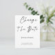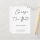Ces cartes personnalisées, modernes et simples Changer la Date sont un moyen élégant d'informer vos invités de votre changement de date. Les caractéristiques de design moderne Changer la Date, vos mots, les noms et la date spéciale dans le script et la typographie en gras. Le dos a une note à votre famille et à vos amis. Cliquez sur "personnaliser ce modèle" pour modifier le texte de votre choix. Veuillez consulter nos autres modèles correspondants dans notre magasin. Si vous avez besoin d'aide sur la personnalisation ou des demandes spéciales, envoyez-moi un courriel à ybnormalone @gmail.com. Merci de vous être arrêté par www.zazzle.com/Personal_Creations. ©Karen Hall pour Personal_Creations à Zazzle.