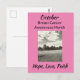 Exprimez vos vœux sincères à une survivante du cancer du sein avec un message "espérance, amour, foi" durant le mois d'octobre. La carte postale rose vif avec une image inspirante en noir et blanc d'un enfant faisant voler un cerf-volant par une journée ensoleillée envoie vos pensées de soutien et de sollicitude durant le Mois de la sensibilisation au cancer du sein.