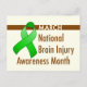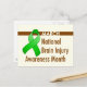 Selon les Centers for Disease Control and Prevention (CDC), les traumatismes cérébraux (TBI) font plus de 50 000 vies chaque année et en désactivent de façon permanente plus de 80 000. Dans cette conception, le texte "Mois national de sensibilisation aux blessures cérébrales de mars" accompagne un ruban vert qui ajoute un ton actif et accessible au message sous-jacent de sensibilisation et de prévention. Le ruban vert de sensibilisation dans cette conception est également disponible sur les objets en soi. Choisissez votre couleur arrière - plan préférée et faites partie de l'art !