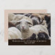 Photo d'un troupeau de moutons, un seul regardant vers la caméra. Écriture Jean 10:27, Roi Jacques Version, "Mes brebis entendent ma voix et je les connais, et ils me suivent imprimé au bas de la carte postale.