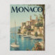 Cette élégante carte postale vintage met en valeur la beauté intemporelle du littoral historique de Monaco. Des voiliers classiques sillonnent les eaux bleu étincelantes, encadrées par le vieux port et l'architecture charmante à flanc de colline. Rendu dans des tons chauds et délabrés par le soleil et des textures rétro, l'oeuvre évoque le glamour du voyage de la Riviera du milieu du siècle. Une pièce parfaite pour les amateurs d'art nautique vintage, d'élégance méditerranéenne et de destinations européennes classiques.