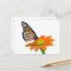 Une image d'un papillon monarque se nourrissant d'une fleur de tithonia orange vif est présentée sur cette carte postale colorée.