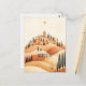 Cette carte postale de voyage, dans un style d'illustration numérique moderne, inspirée du paysage de la ville de Monastir, Tunisie.