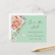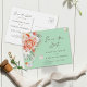 Ce vert menthe et floral à l'exception de la carte postale date est parfait pour un mariage du printemps à la fin de l'été ou autre occasion similaire. Le design présente un bouquet de pêche et de fleurs blanches, une verdure aux accents dorés rose et des pétales flottants pour une touche romantique supplémentaire. Il y a aussi des éléments de coordination correspondants dans le reste de la collection.