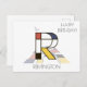 Éblouissant, drôle, monogramme artistique. Voici la lettre "R". Style néoplasticisme, ou De Stijl, ligne et couleur de décoration artistique, l'oiseau drôle est assis sur la lettre. Le domaine de l'art est situé sous la lettre. Le nom modèle "REMINGTON" se trouve sous l'image. Joyeux anniversaire ! texte près de l'image. Vous pouvez modifier ou supprimer tous les textes, et vous pouvez modifier l'image. Carte postale unique, unique en son genre pour un anniversaire ou un autre événement. N'hésitez pas à utiliser le bouton "Modifier la conception" ou "Personnaliser" (selon le coque) de la couleur bleue pour modifier la police, la couleur ou la position du texte modèle. Soyez créatif, customisez, achetez-en un, et soyez heureux !