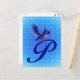 Carte Postale Monogramme Bluebird initial P élégant