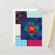 8 différents motifs sont utilisés pour créer un design amusant avec un monogramme décalé en jaune.