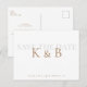 Monogramme simple blanc enregistrer la date. Carte postale. Texte or et gris.