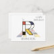 Monogramme éblouissant, drôle et artistique. Voici la lettre "R". Style néoplasticisme, ou De Stijl, décoration artistique de ligne et de couleur, l'oiseau drôle est perché sur la lettre. Le champ artistique est situé sous la lettre. Le nom du modèle "REMINGTON" est situé sous l'image. Texte "Joyeux Anniversaire !" près de l'image. Vous pouvez modifier ou supprimer tous les textes, et vous pouvez changer l'image. Carte postale unique, faite sur mesure pour un anniversaire ou un autre événement. N'hésitez pas à utiliser le bouton de couleur bleue "Modifier la conception" ou "Personnaliser" (selon le cas) pour changer la police, la couleur ou la position du texte du modèle. Soyez créatif, personnalisez, achetez-en un, et soyez heureux !