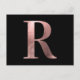 Cartes postales initiales en R monogrammées pour avec un rose faux rose brillant or sombre en métal brossé. Lettre R. Monogram R. Créez votre propre mariage merci avec votre monogramme dans un monogramme de style classique. Consultez la section Monogrammes par lettre pour d'autres dessins. Nous avons créé toutes les lettres avec cette police et cette fausse feuille d'or... mais elles sont sur différents produits. Nous pouvons vous aider à créer ce dont vous avez besoin, ou vous pouvez également transférer le design à d'autres cadeaux. Customisez en ajoutant votre propre photo ou graphique à la lettre !