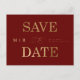Élégant Monogramme rouge profond et or Enregistrer la Date. Mariage. Prénom et nom. Élégant. Simple. Carte postale.