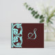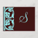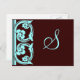 Carte postale monogramme personnalisable avec un arrière - plan chocolat profond et une lettre griffée et un élément d'art médiéval vintage en bleu turquoise clair. Utilisez ce modèle monogramme à lettre unique pour mariages, anniversaires, annonces ou pour ajouter une touche professionnelle personnelle à vos lettres. Cliquez sur Customiser pour modifier les polices ou les couleurs arrière - plans.