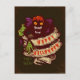Carte postale vintage avec monstre en colère et vieux ruban pour Halloween. Carte postale vintage Halloween. Carte rétro avec monstre pour Halloween.