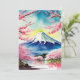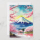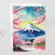 Cette carte postale présente un portrait aquarelle du Mont Fuji au Japon.