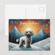 Carte Postale Montagne enneigée Caniche mignon Joyeux Anniversai