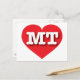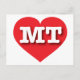 Cette carte postale est dotée d'un coeur rouge vif contenant les lettres coques en haut, en blanc et gras MT, l'abréviation officielle du Montana, l'état trésor. Le verso de la carte postale est vide, en attendant votre texte customisé ou vos sentiments manuscrits.