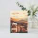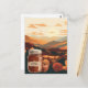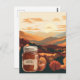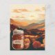 Envoyez un chaleureux salut des hauts plateaux de Virginie avec cette carte postale artistique de Montebello, en Virginie. Représentant une silhouette de coucher de soleil à couper le souffle sur les montagnes Blue Ridge, ce design capture les tons dorés et ambre ainsi que les nuances profondes de rouille d'un automne classique des Appalaches. Le charmant graphique de pot de beurre de pomme ajoute une touche de saveur locale, ce qui en fait un souvenir parfait de l'héritage de la région.