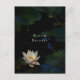 This stunning, atmospheric postcard features a beautiful, immersive photograph of lily pads floating on a dark, reflective pond surface. The deep green tones, stark shadows, and high-contrast lighting create a moody and contemplative nature scene, perfect for sending a calming or philosophical message. Unlike digitally sterile art, this authentic photo captures the real-life imperfections of the water and leaves, offering a genuine connection to nature's quiet beauty.