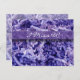 La photographie en gros plan capture des bandes de papier violettes froissées et déchiquetées sur la couverture de la carte postale avec la même image d'opacité réduite au verso. Personnalisez le texte du modèle pour votre occasion.