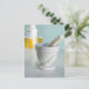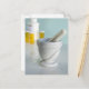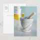 Carte Postale Mortier et pilon, bouteilles de pilules en arrière
