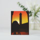 Carte postale : œuvre d'art représentant une mosquée au coucher du soleil avec une architecture islamique typique avec un toit à coupole ronde, un minaret haut et une vue depuis sous les arches de la cour intérieure. Une volée d'oiseaux passant devant la tour du minaret dans un coucher de soleil magnifiquement coloré. Photo de Syrie, mosquée de Damas, qui a été détruite en 2014 pendant le conflit. Série Architecture/Voyage - Syrie. Photographie originale/Art/Design par work4dream.