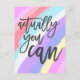 Envoyez à quelqu'un des vibes positives avec ce design vibrant avec un arrière - plan dans un motif arc-en-ciel diagonal en corail clair, jaune, blanc, lilas et bleu, et les mots d'encouragement citation Réellement vous pouvez dans un script élégant.