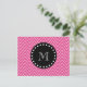 Carte Postale Motif Chevron rose chaud | Monogramme noir