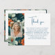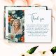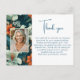 Carte de vœux de remerciement d'anniversaire avec motif élégant de fleurs et de feuillage. Beau motif floral dans des tons de turquoise foncé et d'orange avec une photo personnalisée. Ajoutez votre note de remerciement et votre photo.