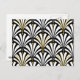 Reproduction numérique d'un papier peint Art Déco classique, carte postale motif ventilateur - blanc sur noir, orné d'or