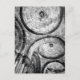 Carte postale parisienne avec photo en noir et blanc de motifs circulaires au plafond de la cathédrale du Sacré-Couer à Montmarte.