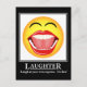 © Sunny Mars Designs. Un visage riant jaune sur une carte postale de motivation pour "rire" avec les mots "rire à vos propres frais. C'est gratuit !"