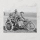 Voici une photo vintage d'une moto indienne avec une voiture secondaire et une mitrailleuse prise entre 1915 et 1920.