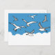 Carte postale pour un ornithologue. Mouettes volant contre un arrière - plan bleu. Cartes postales ornithologues.