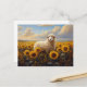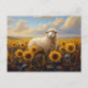 Carte Postale Moutons dans une peinture sur terrain de tournesol