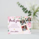 Pink Floral Class of 2025 Multi Photo Graduation Merci Postcard. Célébrez votre réussite en style et en express votre appréciation sincère avec cette carte postale de Merci Multi Photo Graduation 2025. Conçue avec des diplômés modernes en tête, cette carte postale personnalisable présente une disposition propre et contemporaine qui vous permet de présenter plusieurs photos préférées de votre grand jour, que ce soit des photos de casquette et de robe, des portraits de famille ou des souvenirs candides avec des amis. Le recto de la carte postale met en valeur une typographie audacieuse "Class of 2025", à côté des images que vous avez choisies, créant un souvenir étonnant et personnalisé que vos proches aimeront chérir. Le dos comprend un espace pour votre message de remerciement, ainsi que votre nom et les détails de votre diplôme, ce qui facilite l'envoi de sincères notes de gratitude à tous ceux qui vous ont soutenu tout au long de votre parcours universitaire. Imprimée sur un carton de haute qualité avec une finition professionnelle, cette carte postale est aussi durable qu'elle est belle. Que vous envoyiez des remerciements à votre famille, à vos amis, à vos professeurs ou à vos mentors, ce design ajoute une touche soignée et élégante à vos mots d'appréciation. Idéal pour les diplômés du secondaire ou de l'université, ce carte de remerciements peut être facilement personnalisé avec vos photos et texte à l'aide des outils d'édition conviviaux de Zazzle. Faites ressortir votre message en commémorant l'une des plus grandes étapes de la vie. Célébrez votre voyage, honorez vos supporters et partagez votre fierté avec cette élégante et moderne remise de diplômes grâce à votre carte postale. Une façon parfaite de conclure votre Célébration de la Classe de 2025 avec gratitude et grâce. Pour toute personnalisation supplémentaire, n'hésitez pas à me contacter à l'adresse mypaperlove2021@gmail.com