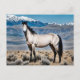 Un beau cheval sauvage se tient debout en regardant le spectateur comme s'il décidait de courir ou non, avec des montagnes enneigées au loin et de l'armoise au premier plan. Une belle œuvre de l'Amérique occidentale