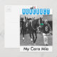 Ma Cara Mia, une fillette brun foncé ou noire, se faisant promener par son marié dans l'enclos Aqueduct. La photo est en noir et blanc sauf pour le rouleau d'ombre vert. Le hot-walker et le cheval portent le numéro six. Fleetphoto