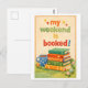 This is a postcard in the style of a cutout paper collage that reads, "My weekend is booked."