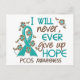 Parcourez un chemin turquoise de sensibilisation du PCOS tout en partageant un sentiment inspirant d'Espoir avec les t-shirts, vêtements, boutons et marchandises I Will Never Give Up Hope, avec des polices de texte contrastées et un ruban turquoise de soutien du PCOS entrelacé de sombres fleurs turquoises et chocolatées.