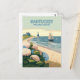 Carte Postale Nantucket Beach Hydrangeas Lighthouse Rétro