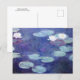 Carte postale d'art avec le tableau Water Lilies, Pink (1897) de Claude Monet, artiste impressionniste français (184-1926). Cette carte postale représente un étang tranquille avec de l'eau bleue profonde et des nénuphars délicats.