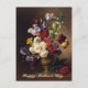 Magnifique peinture à l'huile de nature morte classique hollandaise du 19e siècle avec des fleurs d'été dans un vase doré : roses, tulipes, anémones, pivoines, dahlias, asters, roses trémières, soucis... Une œuvre d'art incroyable peinte avec des détails exquis et une grande habileté dans une lumière naturelle ambiante sereine qui séduira tout le monde, et constitue une excellente carte pour la fête des mères, une carte de remerciement, une carte d'anniversaire, une carte de la Saint-Valentin ou pour toute autre occasion, avec un message éditable en écriture calligraphique qui peut être facilement supprimé pour mettre l'accent sur l'œuvre d'art elle-même. Artiste : H. Reekers