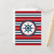 Design nautique avec décoration de voilier en forme ronde sur rouge, bleu et blanc rayé arrière - plan