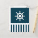 Design nautique avec voilier et décoration à rayures bleues et blanches sur arrière - plan bleu