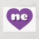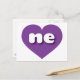 Cette carte postale est dotée d'un coeur violet plein de vitalité, contenant des lettres coques inférieures blanches, arrondies et audacieuses, une version ludique de l'abréviation pour Nebraska, l'état cornhusker. Le verso de la carte postale est vide, en attendant vos sentiments manuscrits ou le texte customisé.