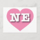 Cette carte postale est dotée d'un coeur rose vif contenant les lettres coques supérieures, blanches et audacieuses NE, l'abréviation officielle du Nebraska, l'état cornhusker. Le verso de la carte postale est vide, en attendant votre texte customisé ou vos sentiments manuscrits.