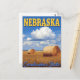 Celebrate the heartland of America with this Nebraska postcard featuring golden fields, blue skies, and round hay bales under fluffy summer clouds. This design beautifully captures the rural charm and agricultural pride of the Cornhusker State. Perfect for travelers, collectors, and anyone who loves the peaceful beauty of the Midwest. A wonderful keepsake or gift for anyone proud to call Nebraska home!