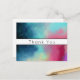 Carte de remerciement avec un design abstrait cool et stylé. Les aquarelles se mélangent pour créer l'illusion d'une image de l'espace. Vert avec des tourbillons de violet, de jaune et de rouge clair se mélangent avec une pincée de points blancs et d'étoiles. Une création artistique élégante.