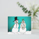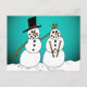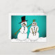 Un couple de neige humoristiquement posé orne le devant de cette carte postale de base